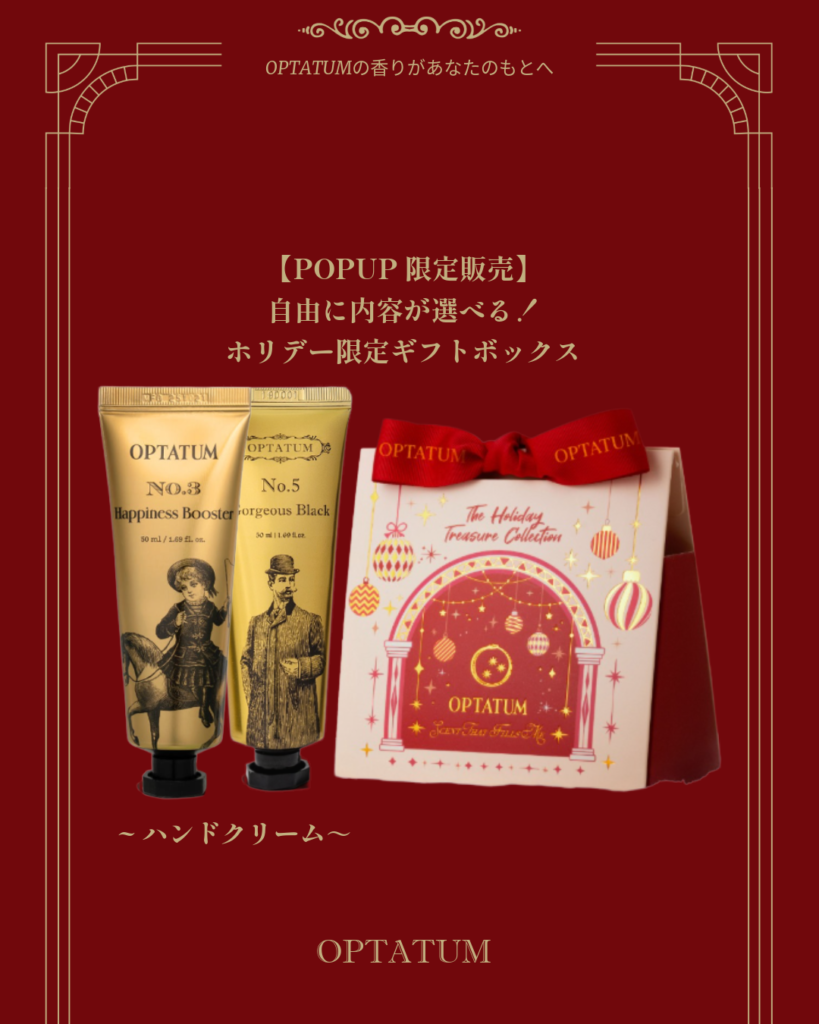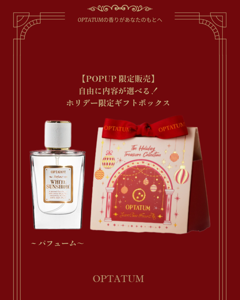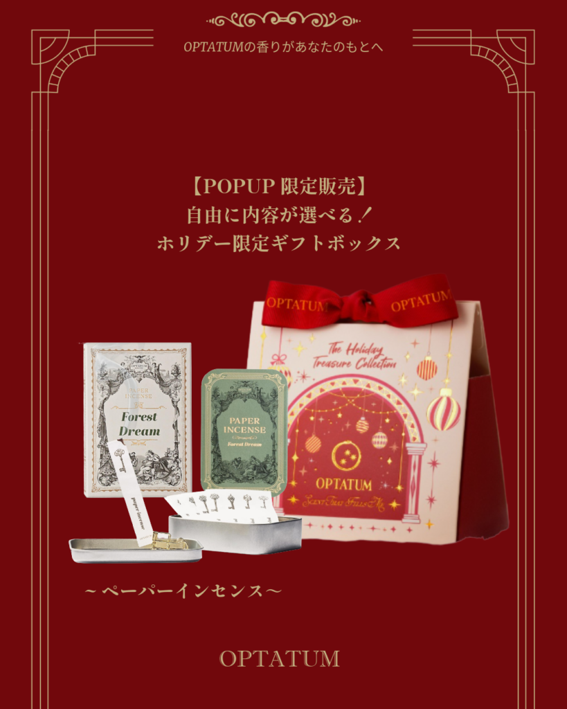 このたび、OPTATUM(オプタウム)は伊勢丹新宿店 ISETAN Seed にて、ホリデーシーズンにぴったりな香りのPOPUPイベントを実施しております。クリスマス限定アイテムからギフトに最適なセットまで、特別なラインナップをご用意いたしました。